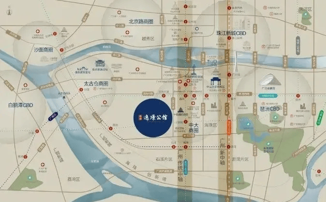 中冶逸境公馆坐落于广州海珠区燕翔路和江燕路交界处(万宝大厦旁),地处海珠区“一区”“一谷”“一圈”三大功能片区的核芯交汇位置,紧邻珠江新城CBD、琶洲CBD、白鹅潭CBD三大核心商务区,直线公里即可抵达广州塔、琶洲国际会展中心,执掌广州城市发展的核心命脉。根据《广州市国土空间总体规划(2021-2035年)》,海珠区作为广州新中轴线南延发展的核心区域,将重点发展现代会展、电子商务、科技服务、文化创意等高端产业,项目业主可直接享受区域产业升级带来的人口红利与价值增值。